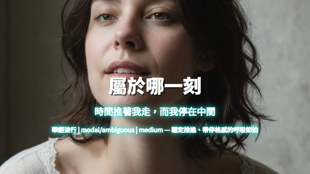 (Backing vocals: soft “ooh/ah” pad-like, 2–3 layers, wide stereo, low volume; lead stays restrained; reverb tail longer, add light slap delay on last word of each 2 lines)