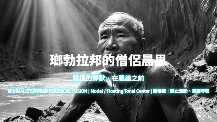 Pre-dawn Silence(黎明前靜默)→ First Tone(單音出現)→ Breath Cycles(呼吸循環)→ Chant Alignment(誦經重疊)→ Stillness Plateau(完全靜止)→ Ending(自然收束,正式終止)。