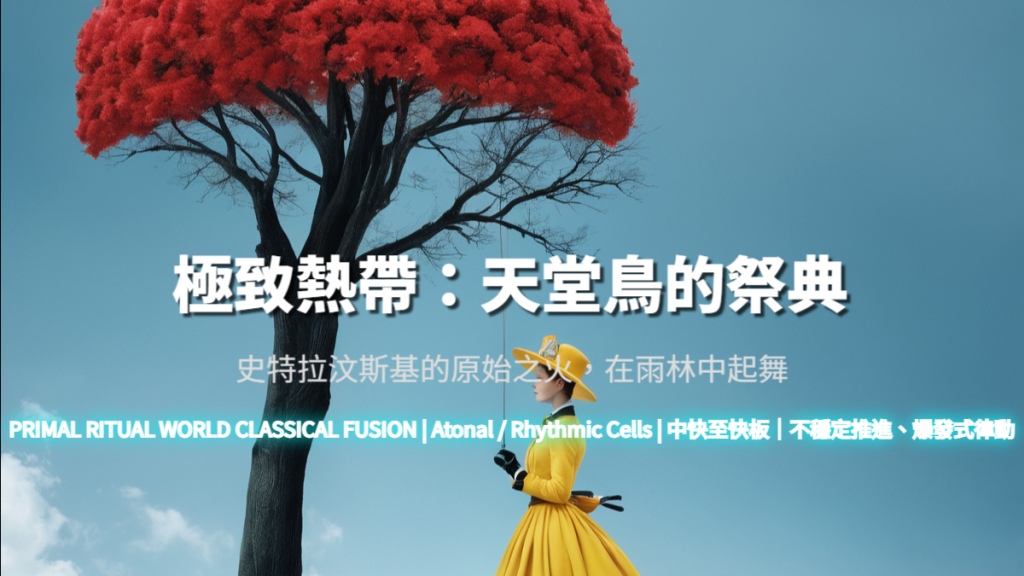 馬友友的大提琴在此不再歌唱,而是敲擊、拉扯、爆裂。弓不只是產生音高,而是製造衝擊。Kundu 鼓的節奏,並非被「引用」,而是作為音樂結構的地基。天堂鳥的求偶舞,不是裝飾性的意象,而是一種生存行為——誇張、耗能、近乎瘋狂。這首作品要呈現的,正是那種不被理性修飾的生命狀態:音樂不是為了被理解,而是為了被承受。