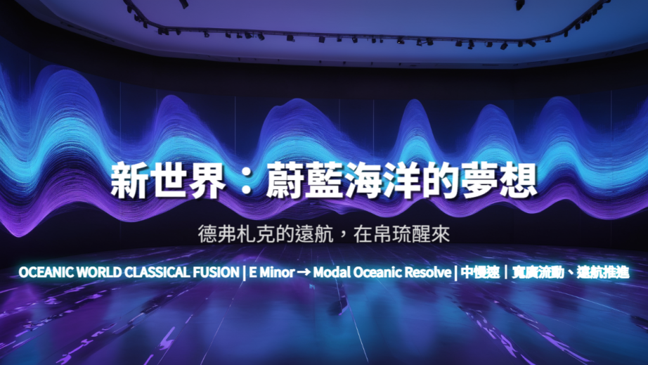 風格定位為「抒情、寬廣的海洋交響式世界古典融合」,避免急促節奏,重視旋律延展與空間層次。
