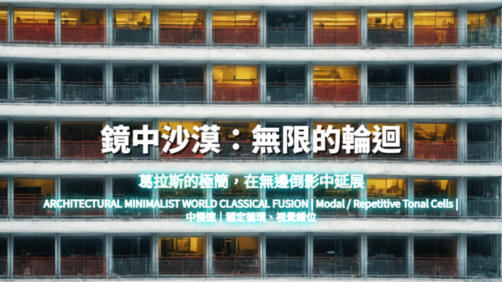 Intro(第一道倒影)→ Loop Establishment(循環建立)→ Phase Reflection(相位反射)→ Desert Pulse Memory(傳統節奏記憶)→ Infinite Mirror Field(無限鏡像場)→ Ending(循環中斷,正式終止)。