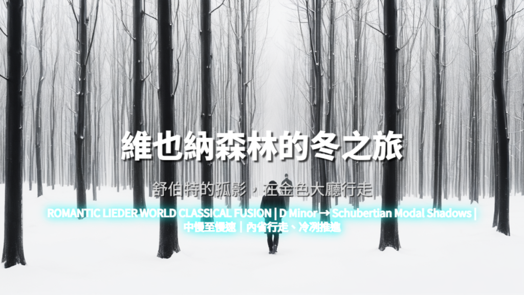 Prelude(霜降靜默)→ Wanderer Theme(旅人主題)→ Footsteps in Snow(雪地行走)→ Café Reflections(沙龍回望)→ Night Organ Breath(夜之管風琴)→ Ending(冬途暫歇,正式終止)。