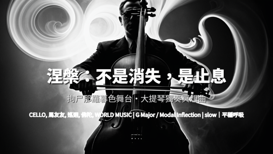 風格定位為 Spiritual Chamber Minimalism。混音採極近距離收音,強調弓毛與弦的摩擦細節,營造親密空間感。動態設計保持平緩弧線,避免戲劇化高峰。主旋律全程由大提琴承擔,其餘聲部僅作空氣層次與時間延展,確保「止息」成為核心聽覺經驗。