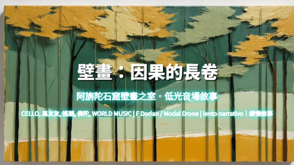 定位為 Narrative Drone Chamber。混音模擬洞窟低光空間,殘響溫暖而短促。動態設計採長弧線推進,每段如畫面轉場。大提琴置於前景中央,強調弓觸與呼吸;Tambura 均勻鋪陳,不做節奏變化。整體避免節奏性衝突,以音色層次形成時間流動。