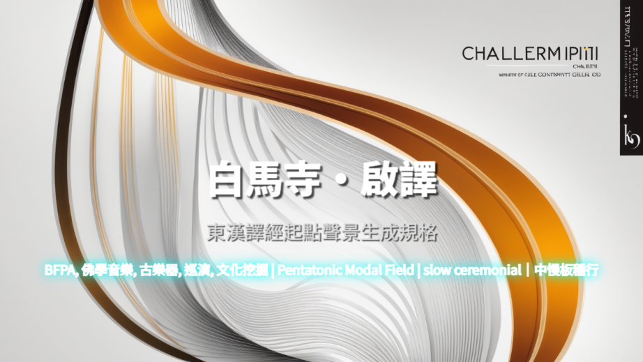 定位為 Han Ritual Chamber Minimalism。嚴禁功能和聲與後世寺院法器。聲場設定為室內道場意象,殘響溫和而短。旋律以五聲音階為限,不構成功能和弦。節奏為行腳慢步,避免盛典感。靜默為段落元素之一,確保“譯場之定”。