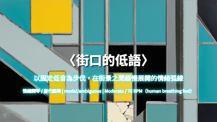 以固定低音為步伐,在街景之間緩慢展開的情緒弧線