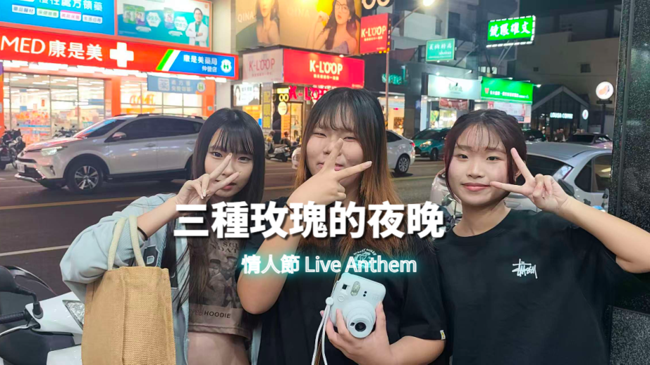 三人輪唱主歌(A段戀愛視角、B段友情視角、C段自我成長視角),副歌全員合唱。Bridge 可設計現場清唱+觀眾回應。