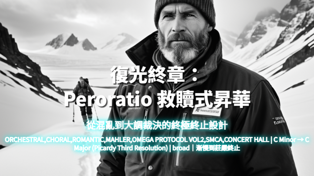 前段回顧動機,後段全面昇華。使用管風琴與合唱層層疊加形成 Auxesis。銅管負責宣告性和聲塊,弦樂提供寬廣鋪陳。結尾使用 ritardando 與 massive authentic cadence。禁止淡出,必須以長延音與總停頓完成。