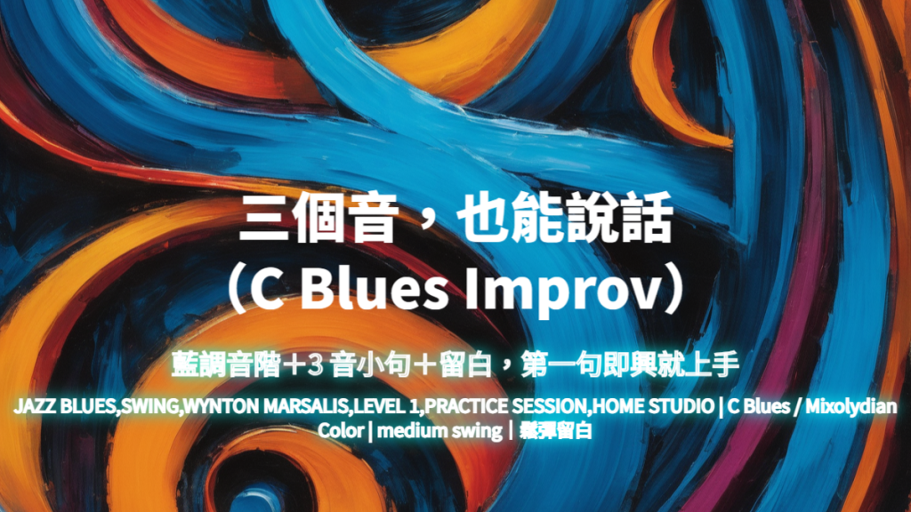 Beginner swing jazz blues,C 調 12-bar。鼓以 ride/brush 維持擺盪,hi-hat 鎖 2、4;貝斯 walking 四分穩定推進。鋼琴與柔和吉他只做簡潔 comp,避免和聲過滿,讓人聲與 scat 的「三音句」成為主角。混音強調中頻溫暖、動態自然,句尾空拍保留房間殘響,營造小酒館教學現場感。