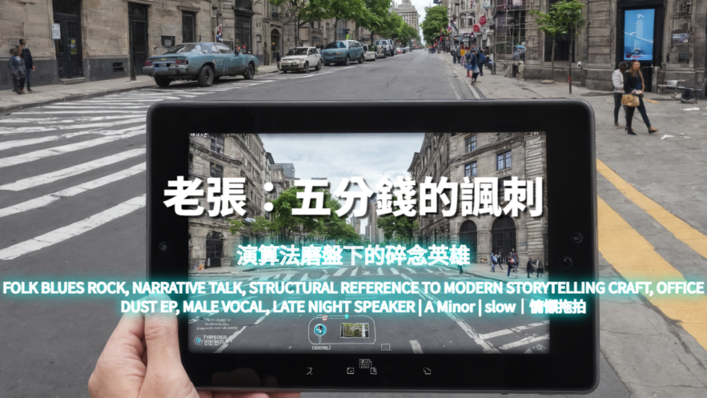 Narrative Folk-Talk融合Sarcastic Blues-Rock。88 BPM慢拍,乾聲錄音,保留呼吸與口腔雜音。主歌極簡吉他與貝斯鋪陳,鼓組只在段落轉折點出現。混音避免過度壓縮,強調真實空氣感與近距離感。