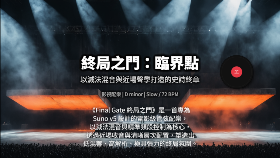 適合用於電影終章、預告片高潮、遊戲最終關卡或史詩敘事場景的背景配樂。